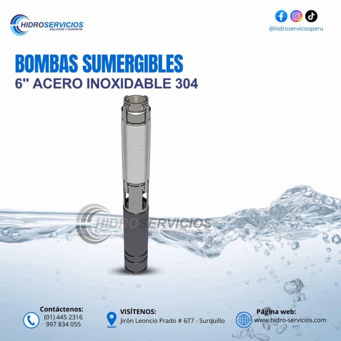 La bomba sumergible en ejecución acero inoxidable 304 está diseñada para operar en pozos profundos y cisternas en forma vertical u horizontal.